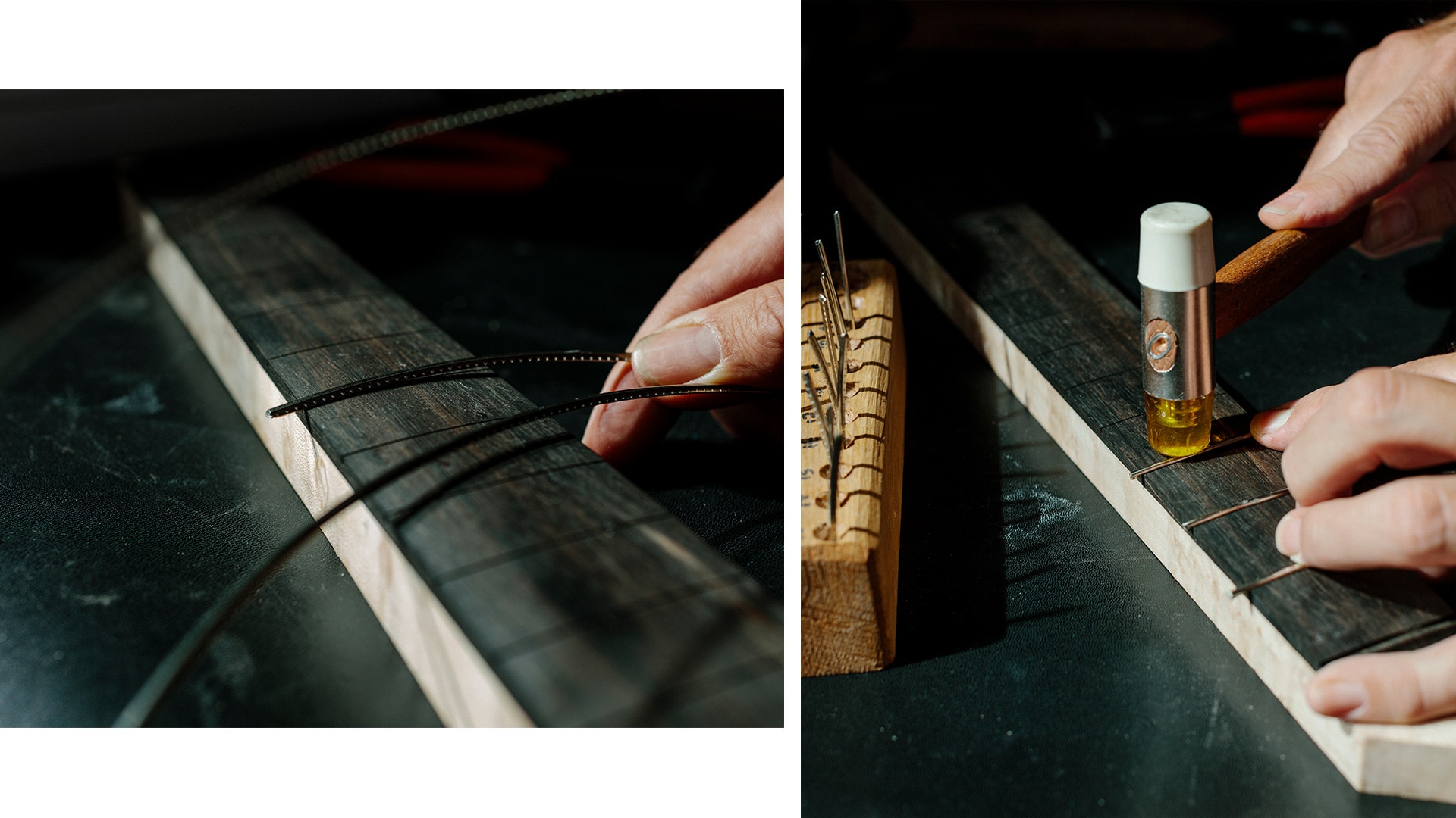 We met, looked at the designers’ really great proposals and passed them on to Ian Malone in London, a great guitar maker. We received extra materials from the BMW i7, such as paint colors, to experiment with. All the electric guitars ended up looking very different from each other. And in fact, the electric guitars will be played live at the exhibition.
