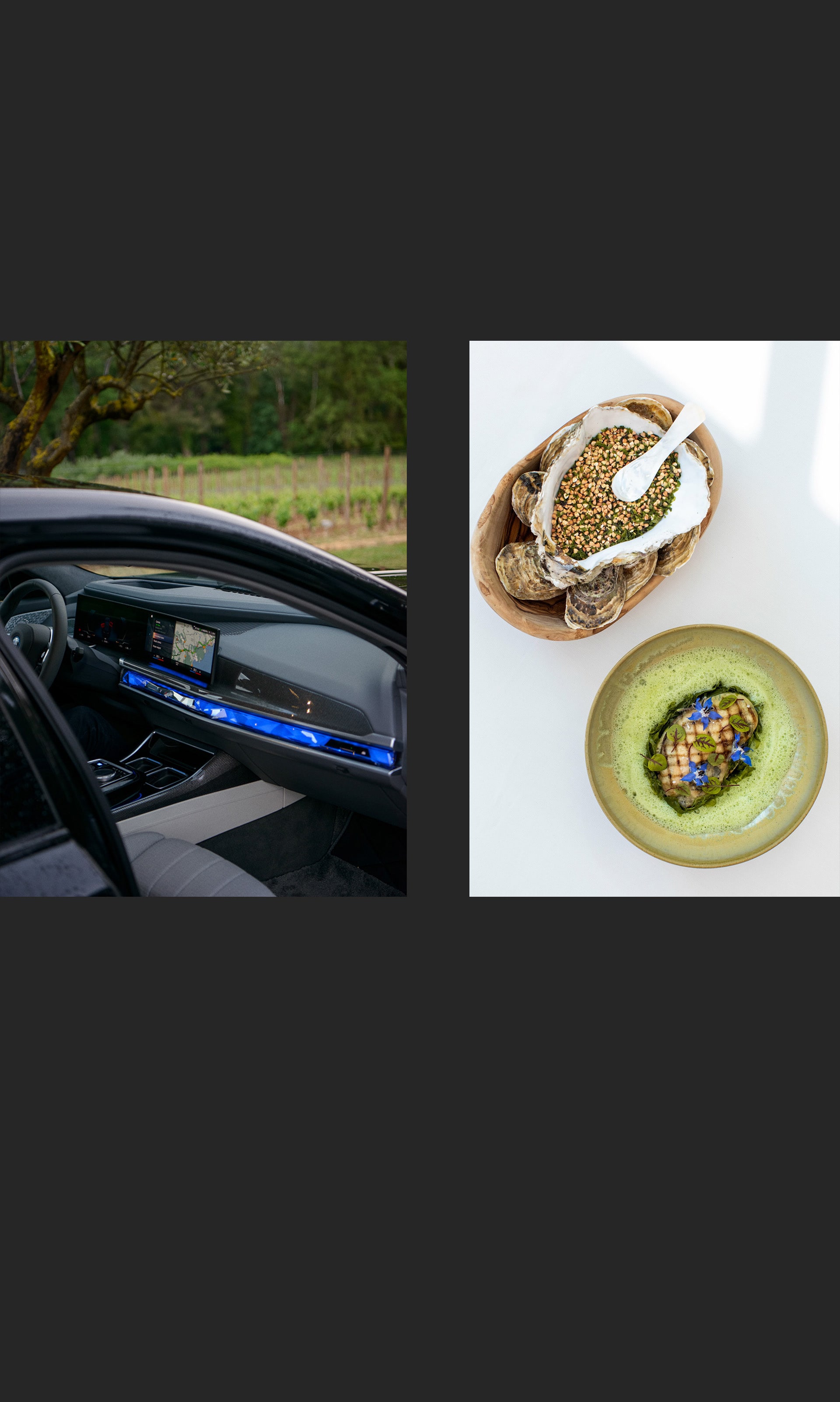 The change in our understanding of luxury, rethinking and refocusing on products with a clear origin also means that curiosity about new highlights along the (culinary) travel route is growing. Gold? Diamonds? Lobster? Caviar? Wagyu beef? Expected luxury is a thing of the past. The new luxury surprises us with unusual details. Just as the crystal headlights of the BMW i7 (➜ Read also: The new light on the road) put on a light show as an exclusive welcome when the driver approaches the vehicle, Rameau and his team serve an appetizer that pays tribute to Provencal honey in all pairings and preparation methods, or a dish that brings out all the elements of the supposedly simple tomato – from marinating it in garden verbena through to a sorbet.